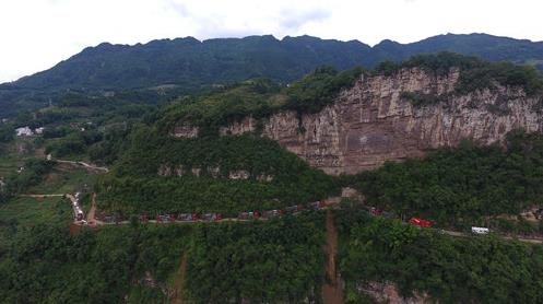 杰瑞壓裂車組行駛在四川頁巖氣地區(qū)蜿蜒的山路中