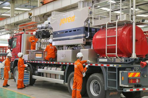 杰瑞集團(tuán)副總裁王鋒告訴記者,杰瑞集團(tuán)重視自主創(chuàng)新,每年將不低于5%的銷售收入投入研發(fā)工作,現(xiàn)已擁有7所工程規(guī)劃部及11所工程設(shè)計(jì)部,吸引著1200多名專職研發(fā)師,在美國休斯頓、加拿大卡爾加里等地設(shè)立了八大研發(fā)中心。裝備制造是杰瑞的傳統(tǒng)核心業(yè)務(wù),圍繞這一核心,杰瑞不斷加大研發(fā)投入,開發(fā)具有國際領(lǐng)先水平的高端裝備。從配件貿(mào)易商轉(zhuǎn)型成為高端裝備制造商,再到一體化解決方案提供商,杰瑞的快速發(fā)展離不開公司在裝備制造領(lǐng)域的不斷突破。