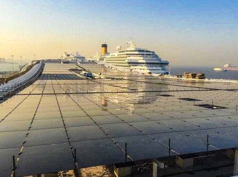 薄膜太陽能組件直接鋪設于上海吳淞口國際郵輪港客運樓樓頂