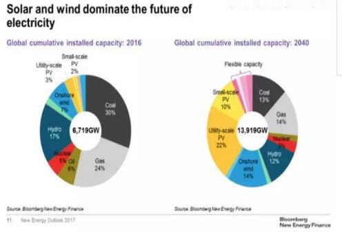 根據BNEF的預測,2040年核電裝機僅占全球發電裝機的3%。來源:BNEF新能源展望2017