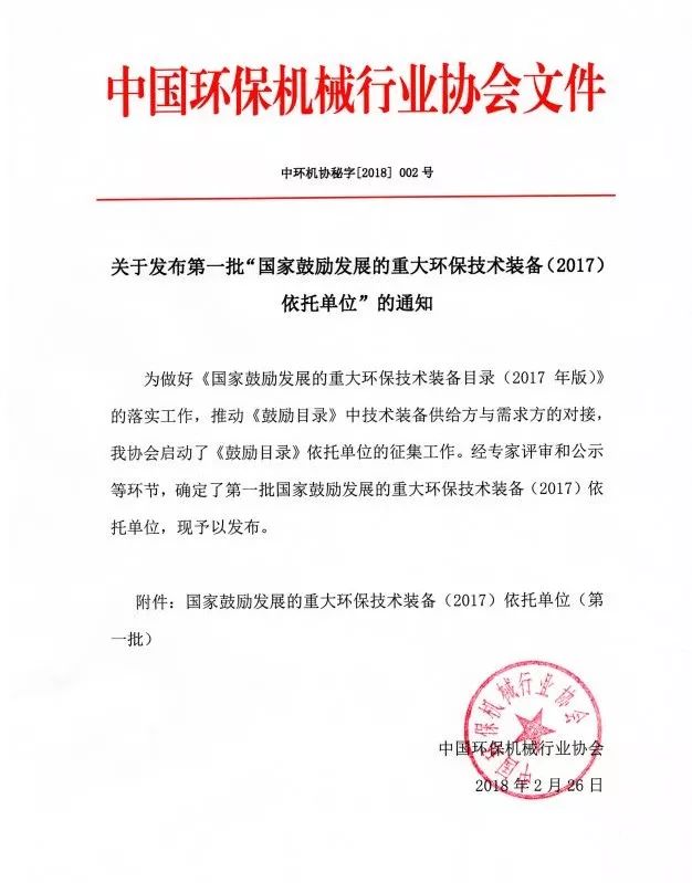 近日,中國(guó)環(huán)保機(jī)械行業(yè)協(xié)會(huì)公布了第一批“國(guó)家鼓勵(lì)發(fā)展的重大環(huán)保技術(shù)裝備依托單位”,杰瑞環(huán)保科技有限公司(以下簡(jiǎn)稱“杰瑞環(huán)保”)的三項(xiàng)環(huán)保裝備入選。