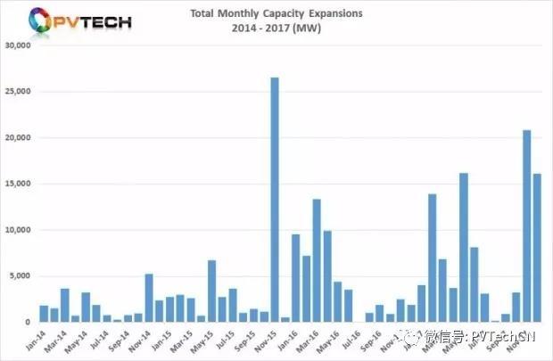 正如所強調的那樣,自2014年我們開始發布這份分析報告以來,2017年四季度位居此前所有多吉瓦級季度產能擴張公告之首。