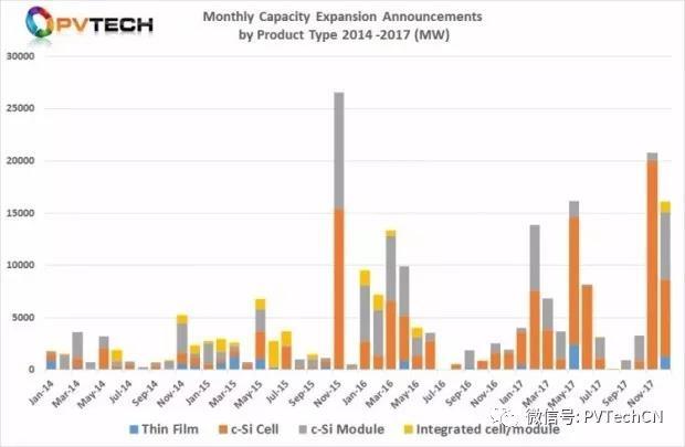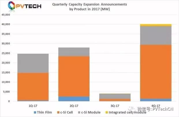 2017年四季度打破了自2014年年初以來創下的所有多吉瓦級季度記錄,總產能擴張計劃超過40GW。