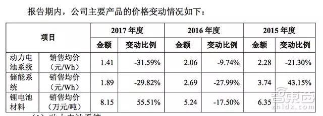 此前寧德時代招股說明書就顯示,隨著競爭的加劇,寧德時代2015—2017年動力電池系統的銷售價格正在逐漸下降,分別為2.28 元/Wh、2.06 元/Wh 和 1.41 元/Wh,而對應的成本則分別為1.33 元/Wh、1.13 元/Wh 和 0.91 元/Wh,成本下降的速度低于售價下降的速度,自然帶來的結果就是利潤降低。