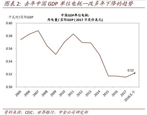近日,國(guó)家能源局宣布修訂用電量數(shù)據(jù)的行業(yè)分類,更是加重了市場(chǎng)對(duì)用電量增長(zhǎng)可信性的疑慮。如圖表1所示,今年以來(lái)用電量增速高于工業(yè)生產(chǎn),且單位GDP電耗常年下降后重拾升勢(shì)(圖表2)——今年1-6月用電量增速達(dá)到9.4%,而同期工業(yè)值增速為6.7%,實(shí)際GDP增速為6.8%。