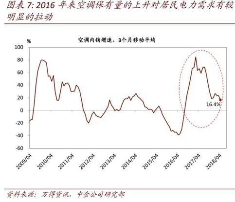 在城鎮(zhèn)化加速和消費(fèi)升級(jí)的雙重推動(dòng)下,居民用電對(duì)整體用電增長(zhǎng)的貢獻(xiàn)率日益提高。雖然2017年居民用電占比僅為14%,但其對(duì)用電量增長(zhǎng)的貢獻(xiàn)突出——2017年居民用電同比增長(zhǎng)7.8%,而2018上半年加速至13.2%,其增長(zhǎng)持續(xù)高于同期整體用電量增速。