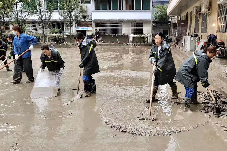 暴雨狂瀉,洪水肆虐。洪水褪去,碧口供電所全體員工挽起鐵臂,沖向戰(zhàn)場,與洪魔殊死較量。“小心腳底下,再來一次,一二三……”碧口供電所黨支部書記顏蓉帶領該所全體女職工泥里來,水里去,一群滿身泥水的“女子隊”們揮汗如雨。她們不怕臟、不怕苦、不怕累,齊心協(xié)力搶險救災,這場爆洪災害讓碧口的女職工成為名副其實的“女漢子”,她們?yōu)檫@次抗洪搶險救災工作呈現(xiàn)出一道最靚麗的“風景線”。