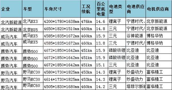 需要特別提及的是,在今年推出的新能源乘用車(chē)中,工況續(xù)航里程在450km以上的車(chē)型共有10款,來(lái)自北汽、騰勢(shì)、威馬、野馬四家車(chē)企;而工況續(xù)航里程最高達(dá)到了476km,來(lái)自北汽旗下的EX3車(chē)型,搭載了寧德時(shí)代提供的能量密度為151.37Wh/kg的動(dòng)力電池。