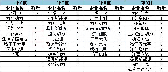 每批目錄中配套車(chē)型數(shù)量較多的電池企業(yè)