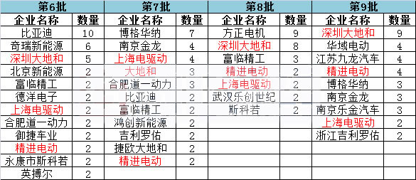 每批目錄中配套車(chē)型數(shù)量較多的電機(jī)企業(yè)