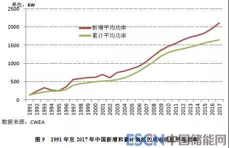 2017年,中國新增裝機的風電機組平均功率2.1MW,同比增長8%;截至2017年底,累計裝機的風電機組平均功率為1.7MW,同比增長2.6%。