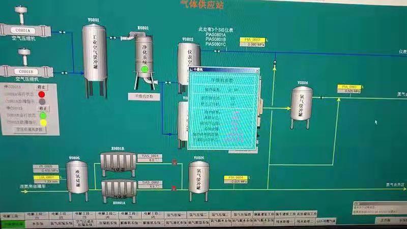 生產(chǎn)監(jiān)控方面,水電解制氫裝置采用PLC全自動(dòng)控制,PLC通過系統(tǒng)中裝配的各類傳感器,實(shí)時(shí)監(jiān)控制氫系統(tǒng)工作時(shí)的壓力、溫度、液位、電解電壓、電解電流、閥位狀態(tài)等參數(shù),并針對(duì)各個(gè)指標(biāo)設(shè)置報(bào)警值和軟連鎖值;針對(duì)關(guān)鍵參數(shù)如壓力、液位等參數(shù)設(shè)置機(jī)械式硬連鎖儀表及元件,以避免在系統(tǒng)突然斷電或PLC控制系統(tǒng)失控時(shí)發(fā)生危險(xiǎn)。在水電解制氫裝置中設(shè)置氧中氫含量和氫中氧含量在線分析儀,并設(shè)置氧中氫和氫中氧含量超量報(bào)警裝置,如達(dá)到超量極限,則連鎖關(guān)機(jī)。設(shè)氫氣檢漏報(bào)警裝置,并與相應(yīng)的排風(fēng)機(jī)聯(lián)鎖,當(dāng)空氣中氫氣濃度達(dá)到0.4%(體積比)時(shí),排風(fēng)機(jī)立即自動(dòng)開啟。
