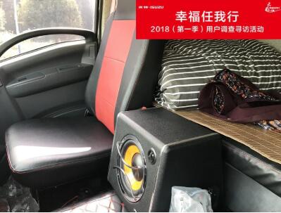 進(jìn)入駕駛室,小編注意到,主駕座椅下方一雙擺放整齊的拖鞋、凌亂但不失溫馨的駕駛室布置、副駕駛座位旁一臺(tái)惹眼的低音炮……一切都彰顯著陳磊耀對(duì)生活品質(zhì)的要求。