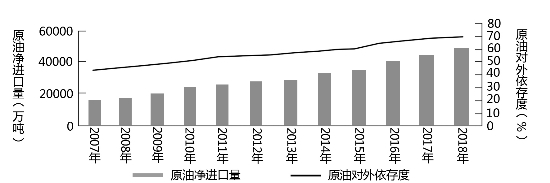 中國(guó)原油進(jìn)口量及對(duì)外依存度變化(來(lái)源:2018年國(guó)內(nèi)外油氣行業(yè)發(fā)展報(bào)告)