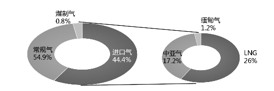 2018年中國(guó)天然氣供應(yīng)結(jié)構(gòu)(來(lái)源:2018年國(guó)內(nèi)外油氣行業(yè)發(fā)展報(bào)告)