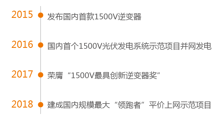2015年,中國首款1500V逆變器在陽光電源誕生,此后,1500V系統開始被光伏業界人士頻繁提及,而陽光電源也開始將1500V技術應用于實際項目中,并推動1500V系統從第一批領跑者基地試點到第三批領跑者廣泛應用,不斷推進平價上網進程,引領中國光伏產業發展。