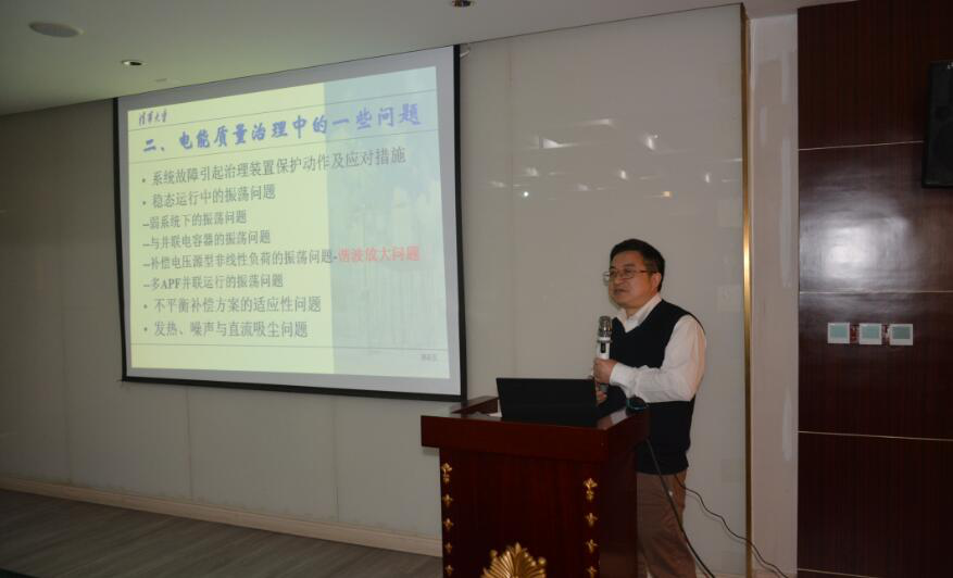會(huì)議伊始,由清華大學(xué)柔性輸配電系統(tǒng)研究所所長姜齊榮老師現(xiàn)場致辭,并作《電能質(zhì)量治理現(xiàn)狀及電能質(zhì)量新進(jìn)展》的報(bào)告,姜老師對電能質(zhì)量治理現(xiàn)狀、電能質(zhì)量治理中存在的哪些問題進(jìn)行全面的解析與精彩發(fā)言,強(qiáng)調(diào)了配網(wǎng)動(dòng)態(tài)電壓過程中的穩(wěn)定性及操作性,不平衡補(bǔ)償方案的適應(yīng)性及解決方案,保證產(chǎn)品在各種環(huán)境下適應(yīng)能力和安全性。最后他特別提醒,電能質(zhì)量問題要引起高度重視,要正確解決電能質(zhì)量補(bǔ)償裝置引起的震蕩問題,降低損耗與噪音,綜合電能質(zhì)量治理裝置是未來的發(fā)展方向。