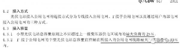 戶用光伏容量,不超過接入變壓器容量25%的要求,來自于2011年5月6日實施的國家電網企業標準:Q/GDW617-2011。