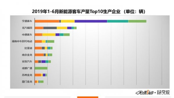 生產企業來看,2019年6月,新能源客車生產7049輛,出自48家客車生產企業,與上月相比多出11家企業。宇通客車在新能源客車領域依然保持絕對霸主地位,依然是唯一一家單月產量過千輛的新能源客車生產企業。