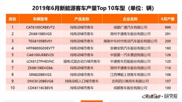 6月當月,產量過百企業17家,其中成都廣通汽車單月生產型號為CAT6100CRBEVT2廣通牌純電動城市客車999輛,躍居排行榜第二名。