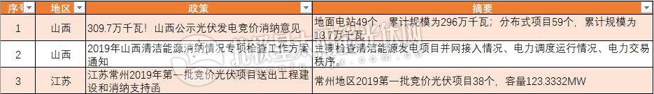 另,常州地區2019年第一批競價光伏項目共計38個,容量123.3332MW,國網江蘇電力公司常州分公司對消納能力進行了分析,最終是否具備接入和消納條件以接入系統評審意見為準。