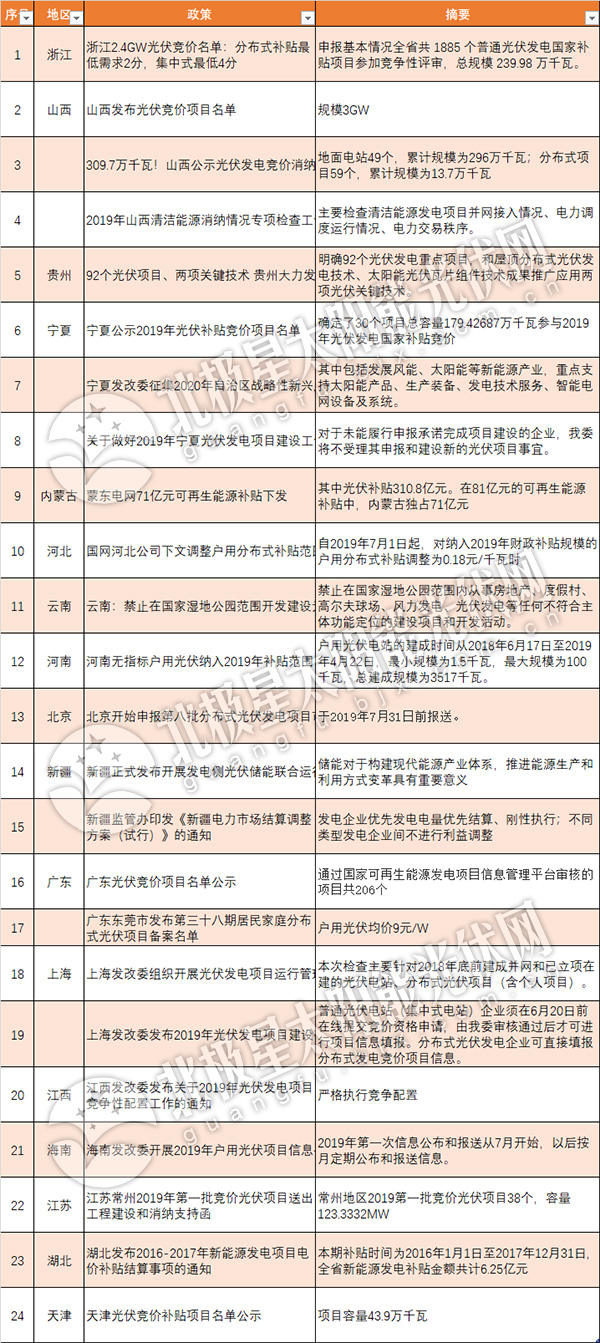 7月,國家能源局公布2019年光伏發電項目國家補貼競價結果,浙江、山西、寧夏、廣州、天津、河北等共計22個省項目納入2019年國家競價補貼范圍,其中,申報項目最多的省份當屬浙江,達到1670個,寧夏僅有27個項目。