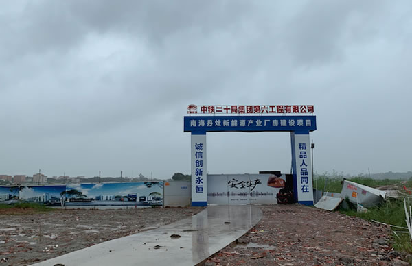 進(jìn)入長(zhǎng)江項(xiàng)目所在地,一座臨時(shí)搭起的方形簡(jiǎn)易大門上寫著“南海丹灶新能源產(chǎn)業(yè)廠房建設(shè)項(xiàng)目”的大字。這里將是長(zhǎng)江項(xiàng)目未來的生產(chǎn)車間。
