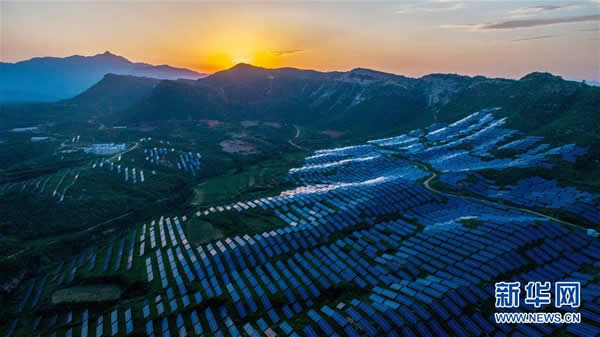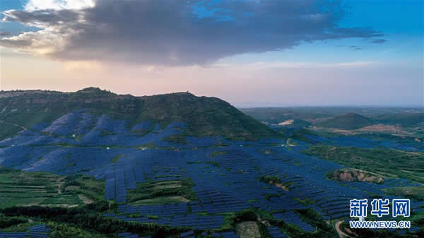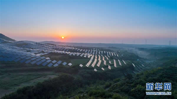 這是河北省內丘縣柳林鎮虎頭山光伏電站(8月21日無人機拍攝)。