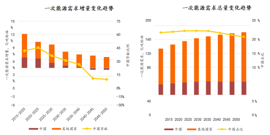 究其原因,是因?yàn)?035年前,產(chǎn)業(yè)結(jié)構(gòu)優(yōu)化和技術(shù)進(jìn)步是能源強(qiáng)度下降的主要因素;2035年后,技術(shù)進(jìn)步成為能源強(qiáng)度下降的首要因素。此外,我們國(guó)家進(jìn)入了工業(yè)化后期,城鎮(zhèn)化穩(wěn)步推進(jìn),能源需求由生產(chǎn)側(cè)轉(zhuǎn)向消費(fèi)側(cè),工業(yè)用能占比將持續(xù)回落,也讓能源整體消費(fèi)需求出現(xiàn)了峰值后回落的情況。