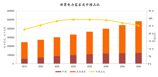 因?yàn)橹悄芑⑽锫?lián)網(wǎng)時(shí)代的到來(lái),電力需求增長(zhǎng)將更側(cè)重于民用端。民用和工商業(yè)將貢獻(xiàn)全社會(huì)用電增量的56%的份額。2030年前我國(guó)電力需求增幅略快于世界增速,使得全國(guó)占世界的比重上升至29%左右。