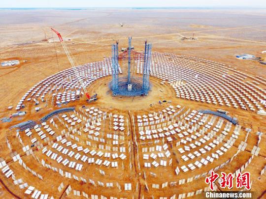 近年來,甘肅酒泉市玉門市大力發展綠色新能源,繼風電之后,光熱發電產業成為了玉門的新名片。圖為玉門鑫能5萬千瓦光熱項目建設工地?!铌?攝