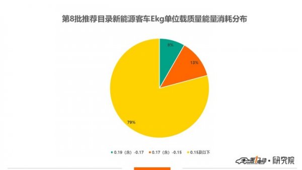 非快充類客車,從其單位載質(zhì)量能量消耗量,即Ekg水平來看,79%車型Ekg水平在0.15Wh/km·kg以下,可獲得1倍補(bǔ)貼系數(shù);9款客車Ekg水平在0.15-0.17(含)之間,可獲得0.9倍補(bǔ)貼系數(shù);其余6款車型可獲得0.8倍補(bǔ)貼系數(shù)。