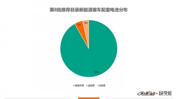 搭載動(dòng)力電池來看,磷酸鐵鋰依然為新能源客車主流配套類型,本批次搭載磷酸鐵鋰客車車型入選數(shù)量占比92%。其余客車車型分別搭載錳酸鋰(5%)和鈦酸鋰(3%)。