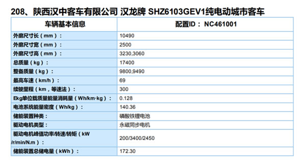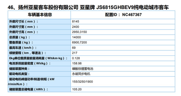 本批次中,揚(yáng)州亞星一款型號(hào)為JS6815GHBEV9純電動(dòng)城市客車和陜西漢中客車一款型號(hào)為SHZ6103GEV1純電動(dòng)城市客車Ekg僅為0.127Wh/km·kg。