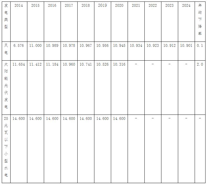 表四:2014-2024年俄羅斯可再生能源發電裝機每千瓦建設成本最大限值