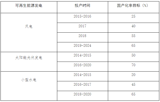 表五:俄羅斯可再生能源發電生產設備國產化率目標