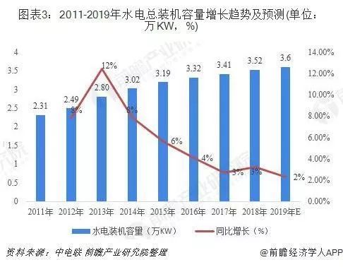 2、截止2019年年底,中國水電總裝機容量將達(dá)3.6億kW