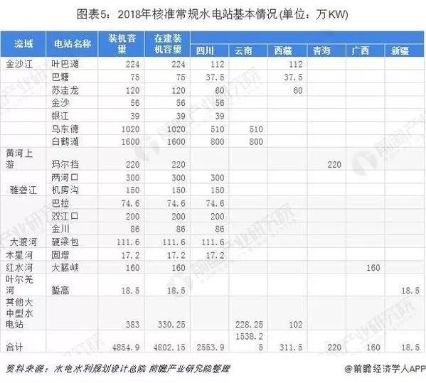 2018年核準(zhǔn)常規(guī)水電站裝機容量達(dá)到4854.9萬kW,在建裝機容量達(dá)到4802.15萬kW,其中四川省最多,常規(guī)水電站裝機容量達(dá)到2553.9萬kW。