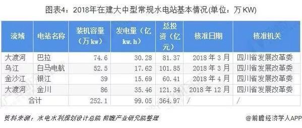2018年在建大中型常規(guī)水電站裝機容量達(dá)到252.1萬kW,發(fā)電量達(dá)99.05億kW.h,總投資達(dá)到364.97億元。