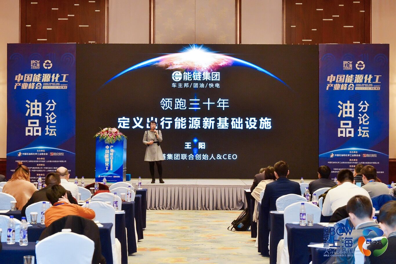 圖注:能鏈集團(車主邦/團油/快電)聯合創始人兼CEO王陽發表演講