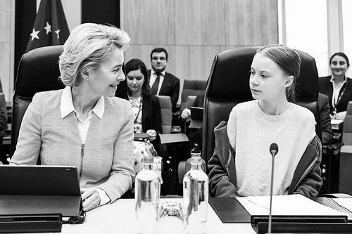格雷塔·圖恩伯格(右)與歐盟委員會主席烏爾蘇拉·馮德萊恩參加氣候討論。圖片來源:Isopix _ Shutterstock