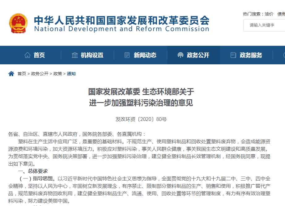 今年年初,國家發改委和生態環境部發布了《進一步加強塑料污染治理的意見》,這份意見中,提到兩個重要時間點:2020年開始落地執行禁塑和限塑政策;2022年完成打造綠色物流模式,快速遏制物流相關產業中的一次性塑料制品生產和使用。