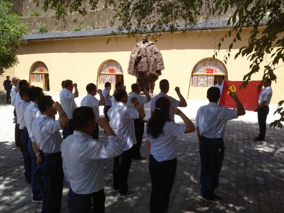 本網訊 6月23日,華池公司前往位于華池縣林鎮鄉的寨子灣陜甘邊區軍委、蘇維埃政府舊址開展慶祝建黨99周年暨“追尋紅色記憶、弘揚南梁精神”主題活動。該公司全體黨員、發展對象、入黨積極分子共計26人參與了此次活動。