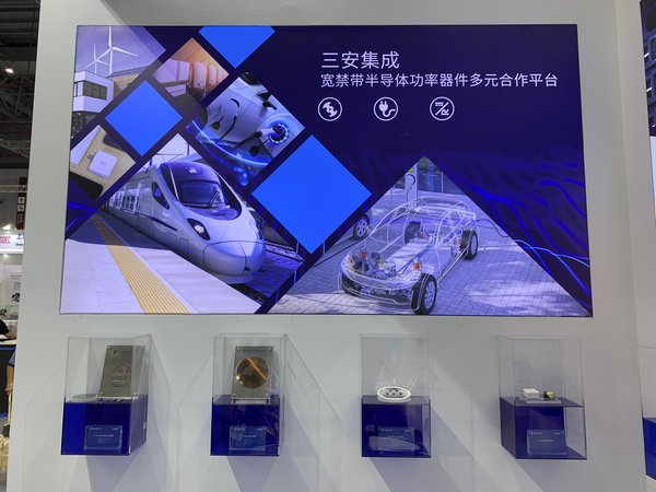 在功率半導體展示區展出的650V/1200V碳化硅肖特基勢壘二極管,采用混合PiN肖特基二極管(MPS)設計,能提供更好的可靠性和魯棒性。比肩業界領先水平的“低正向壓降”特性,大幅減少導通損耗,幫助實現系統級別的效率提升和功率密度提升,支持高壓DC/DC和多種PFC應用場景的穩定運行。同時,三安集成已進行了碳化“硅金屬-氧化物-半導體場效應管(MOSFET)”的工程樣品研制,預計于2020年第四季度,可為客戶推出工業級1200V DMOS器件。
