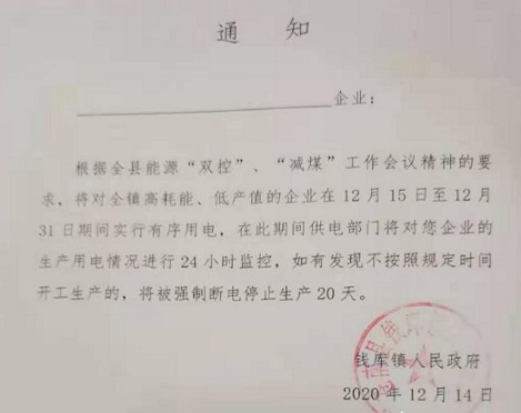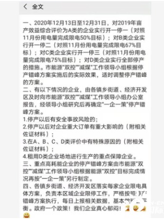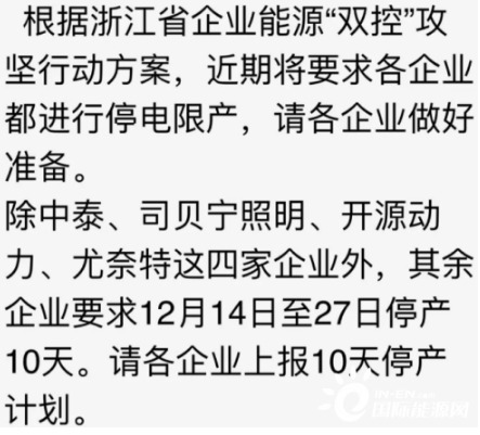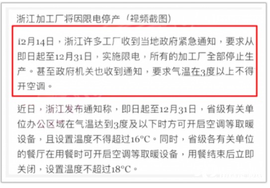 近日,浙江地區(qū)眾多工廠反應(yīng),收到了緊急通知,要求即日起至12月31日,所有加工廠全部停止生產(chǎn)。政府機關(guān)也收到通知,要求氣溫在3度以上不得開空調(diào)。