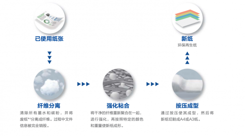 再生紙并不是什么新概念,讓愛普生引以為傲的是這張再生紙背后的“黑科技”——愛普生的“干纖維技術”。眾所周知,傳統造紙的過程會用到大量的水資源,而且會產生大量廢水,而通過應用“干纖維技術”,無需用水就可通過將廢棄紙張纖維分離,并去除顏色,再添加合成材料后進行加壓成型,從而制造新的紙張,讓紙張重生。整個過程只需要少量水維持讓系統潤滑。
