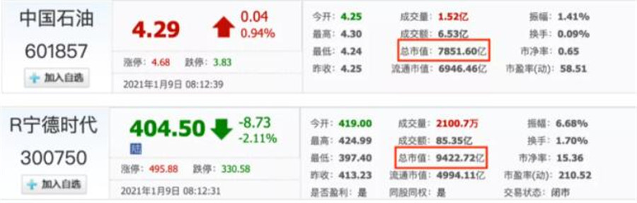中國最大的石油生產企業——中國石油,市值已經低于中國最大的動力電池生產企業——寧德時代!