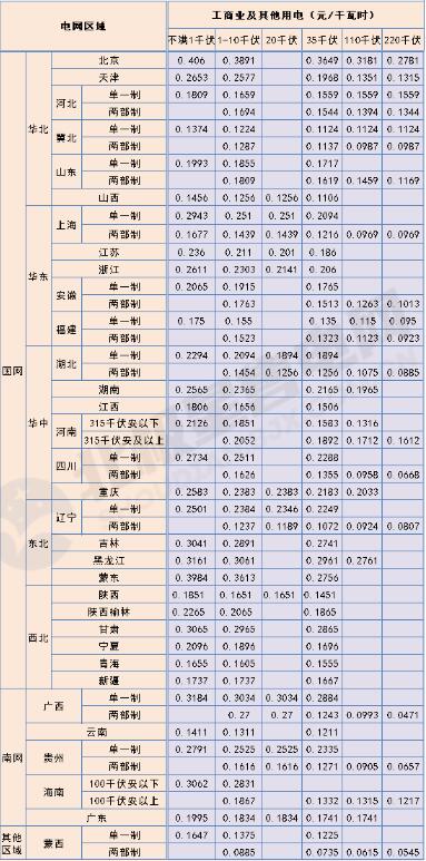 從電價構成上看,新一輪電價構成更加合理,部分地區(qū)取消大工業(yè)目錄電價,有專家稱這是解決電價分類交叉補貼問題的有效嘗試。在新政策下,26個地區(qū)中已有12個將大工業(yè)、一般工商業(yè)合并為“工商業(yè)及其他用電”,并作單一制、兩部制區(qū)分。另外需要注意,上海單獨制定了一般工商業(yè)兩部制價格。