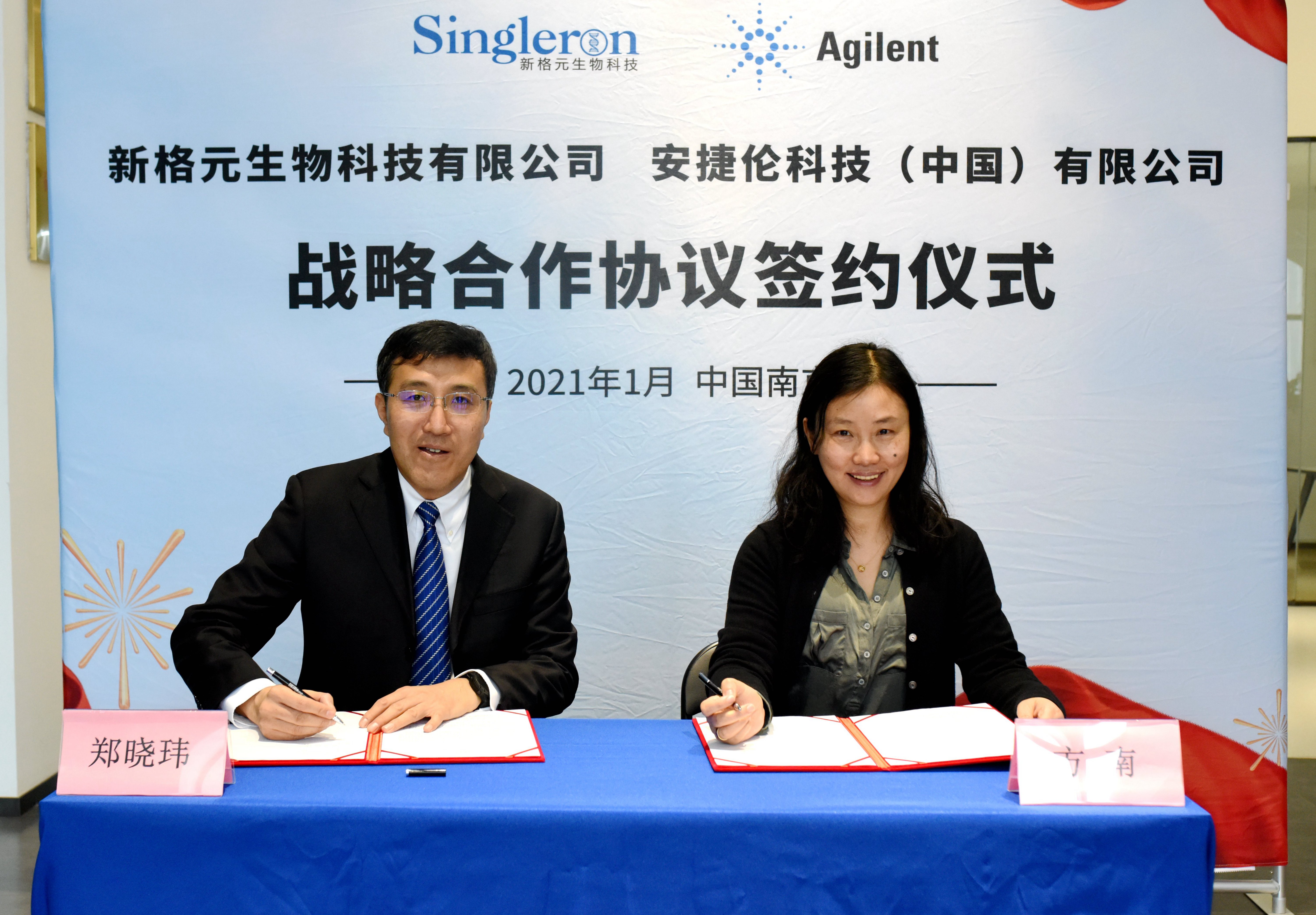 安捷倫大中華區診斷與基因組學事業部總經理鄭曉瑋(左)與新格元創始人、首席執行官方南(右)