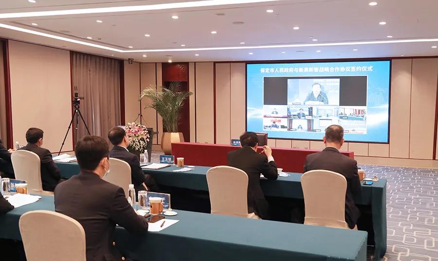 保定市委書記黨曉龍在保定主會場出席,保定市市長郭建英主持儀式,新奧集團董事局主席王玉鎖等領導在各自會場遠程出席。新奧新智總裁、新奧數能CEO周支柱代表新奧數能在儀式上簽約。